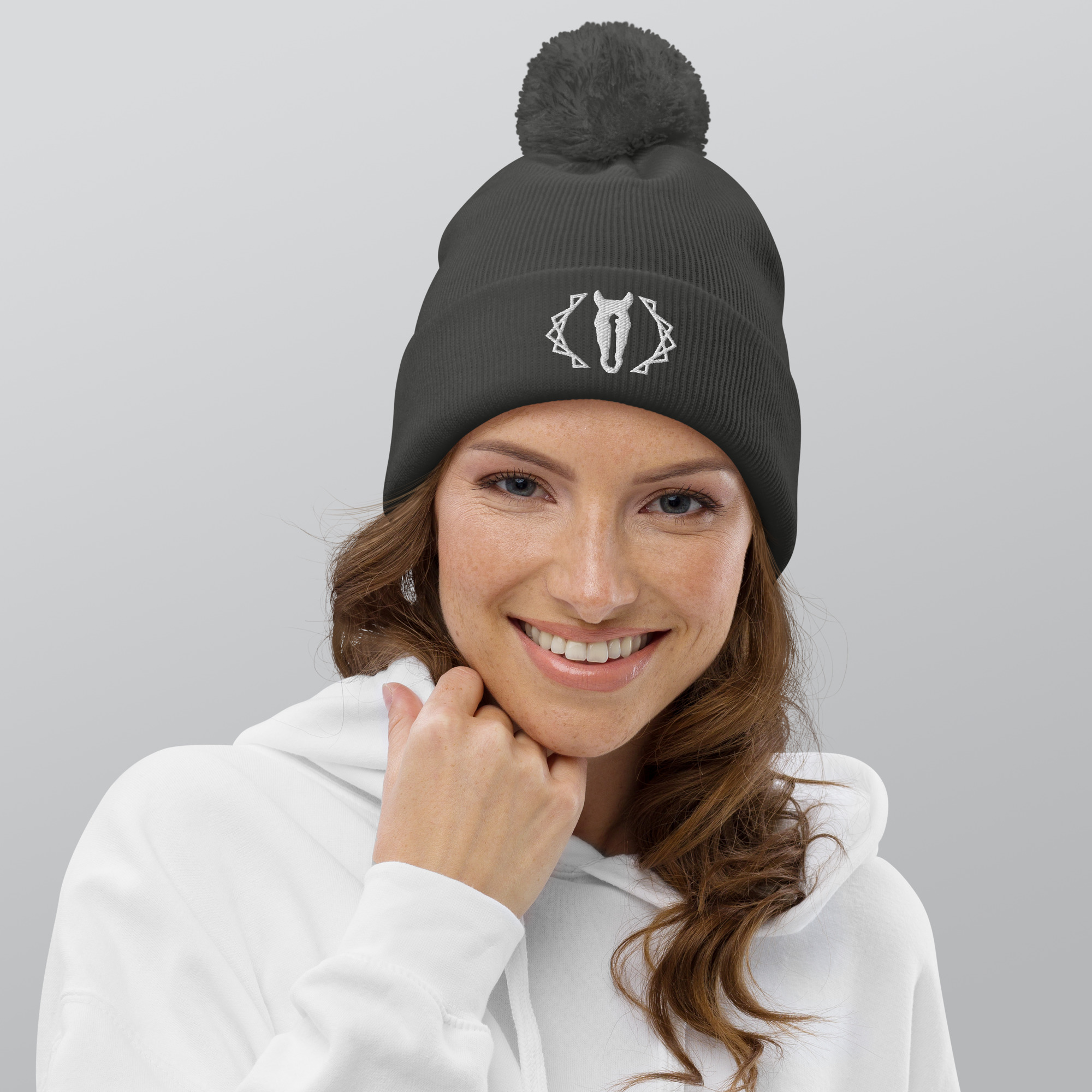 En plein centre de ce bonnet se trouve une broderie représentant la tête de votre cheval favori. Le pompon, doux et moelleux, ajoute une dimension chic à l’ensemble, faisant de ce bonnet bien plus qu’un simple accessoire d’hiver.